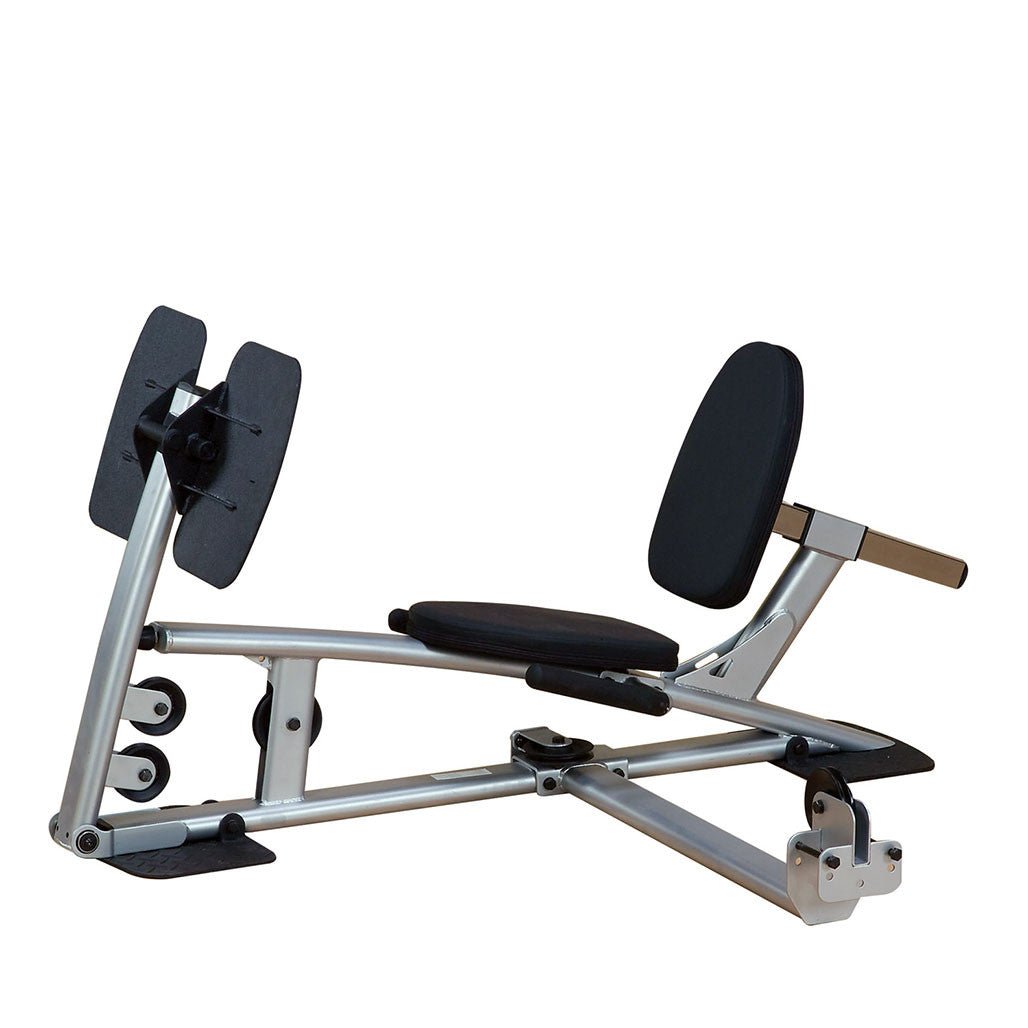 Advanced design eliminates ankle stress and provides consistent resistance throughout full range of motion. Pivoting press plate rotates both forward and downward to target thighs, hamstrings and glutes. Extra large, extra wide, non-slip rubber covered press plate will handle the big guys. It's built for safety, comfort and exercise variation. Side stability handles lock you in place. Precision engineered pillow block bearings for smooth movement and tighter tolerances.