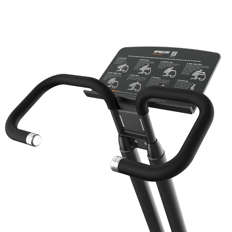 Use the built-in placard to guide the stretching of the key muscle groups in your upper and lower back, hamstrings, quadriceps, hips, and shoulders.