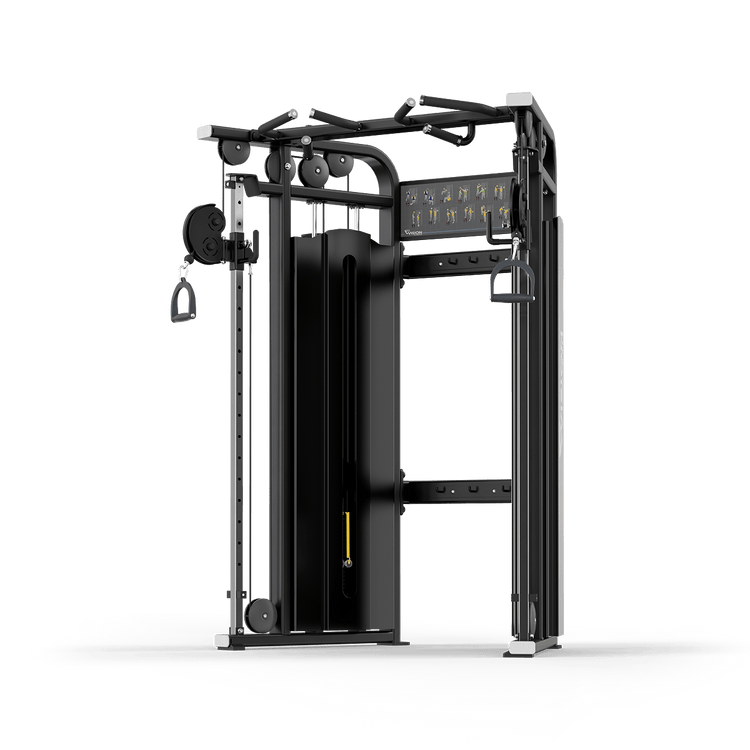 Clearly indicated adjustment points make use intuitive, one-handed pulley adjustment offers easy operation, and placards highlight targeted muscle groups and proper user positioning for a wide range of exercises.